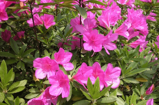 夏鹃体型较小,先长枝叶,开花时间相对较晚,5-6月初,可以持续开花到7-8月。