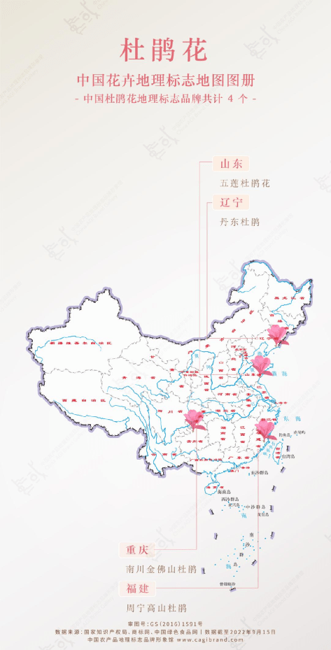 今日分享中国杜鹃花地理标志地图,共计4个地标产品。