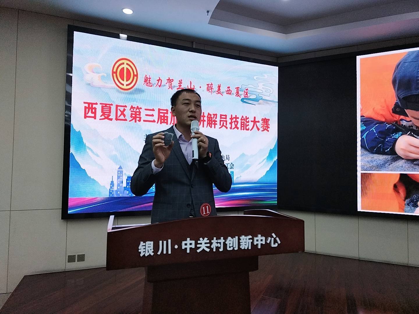 宁夏新闻网讯(通讯员 路杰 岳婷婷)为大力弘扬劳模精神、劳动精神、工匠精神,发挥新时代文旅服务人员的榜样示范作用,全面提升文旅服务人员的业务素质和技能水平,4月19日,由西夏区总工会、西夏区委宣传部、文化旅游体育广电局联合举办的“魅力贺兰山·醉美西夏区”第三届旅游讲解员技能大赛在银川中关村创新中心举办。来自辖区10余个旅游景区及特色酒庄选拔的16名优秀讲解员参加了此次比赛。