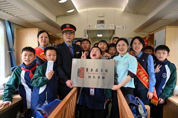4月13日,重庆图书馆首个列车书屋在中国铁路成都局集团有限公司重庆客运段公益性“慢火车”上揭牌。新华社发