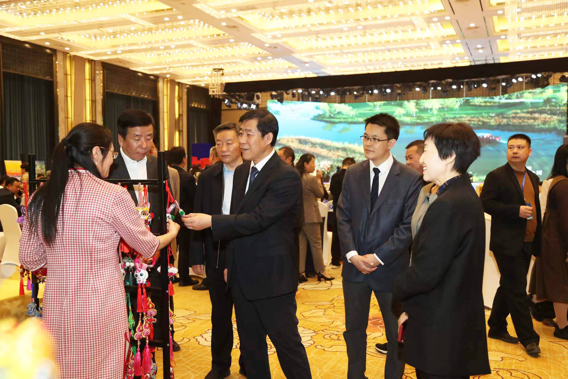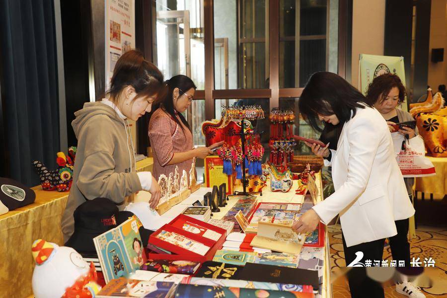 太行太美,长治常来。在震撼与美感并存的长治旅游宣传片中,长治文旅推介会精彩开场。在平顺县、武乡县、八泉峡的推介员的带领下,在长子鼓书、杂技表演、歌曲演唱等艺术表演中,大家品文化、养身心,深度“游览” 了长治在神话、古建、山水、红色、气候等方面独特的资源优势。“‘山西长治•壮美太行’长治欢迎您” ……在推介员热情激昂的讲解中,掌声经久不息。此外,会场两侧还设置了非遗展区、特产展区、文创展区。上党堆锦、沁源剪纸、黎侯虎等非遗产品备受热捧,沁州黄小米、上党腊驴肉等地方特产获得了一波好评,有长治地域特色的文创产品,书本、背包、鼠标垫、书签等颇受青睐。尤其是上党堆锦《江山多娇》收获一波粉丝,作品中人物的服饰和背景都以“青绿”颜色为主色调,画中人物的发髻采用布丝抽丝成型,面部的眼睛、耳朵凹凸有致,栩栩如生,充分展现了具有浮雕效果的堆锦制作技艺。
