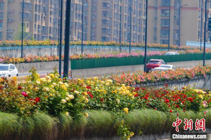 中新网杭州4月19日电 题:浙江杭州开启“走花路上班”模式 215万株月季装点城市高架