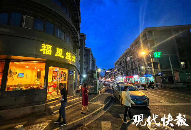 “我在这儿卖报30多年了,几年前小区重新翻修、电线入地、马路拓宽,街道容貌变好了,来玩的人越来越多。”在路口,今年59岁的赵金荣经营着报刊亭,报亭窗口摆放了几样报纸和一排饮料,亭子内的电风扇呼呼地吹着。“最近天气好,来往的年轻人又变多了,尤其是周末。”赵金荣一边说着,一边给记者指方向,“往里走,在那里拍照最好看,能拍到紫峰。”他接着说,“停下来买书看报的人少,不少人顺道买个饮料啥的。”