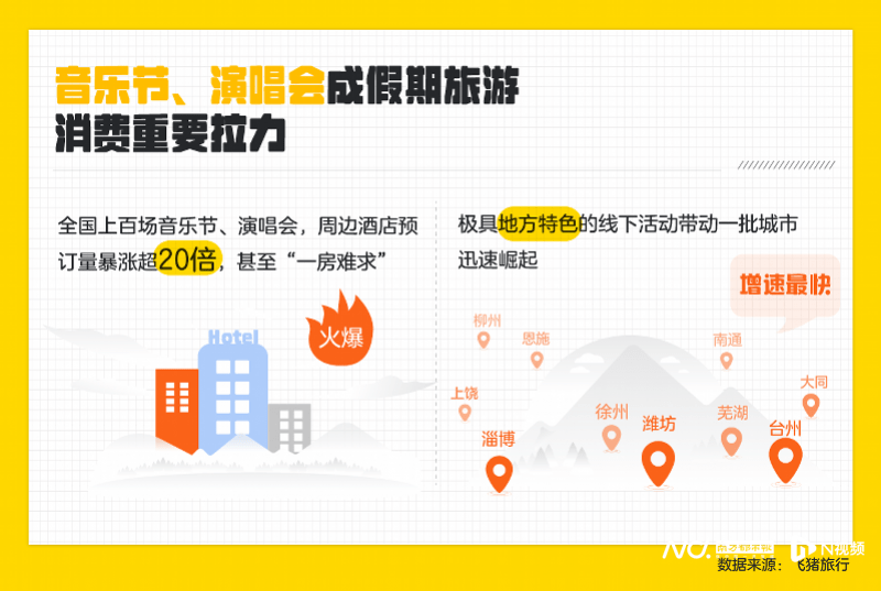 “旅行+演艺活动体验”在今年“五一”假期尤为火爆,一场久违的热闹节庆,成为“酷旅行”的标志。据不完全统计,五一假期前后全国各地将举办上百场演唱会、音乐节,是演出市场3年多来迎接的首个爆发窗口期。飞猪数据显示,五一假期演唱会、音乐节所在地周边的酒店预订量同比暴增超20倍,部分热门酒店甚至“一房难求”。