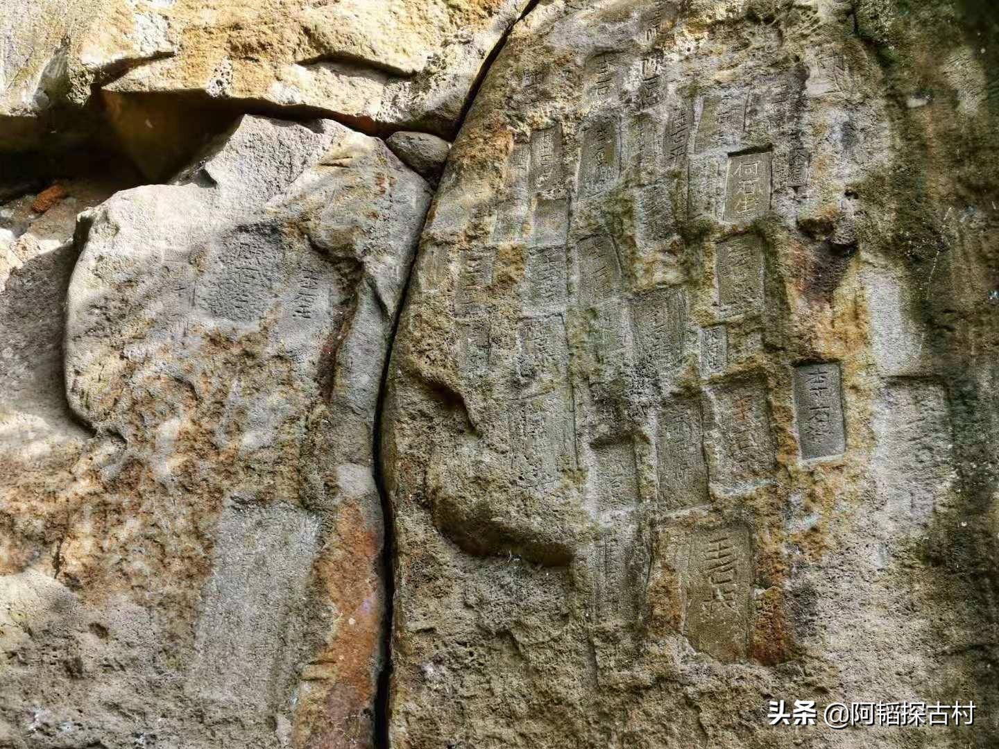 在仙人峒一侧有众多石印,分别刻着“李石生”、“陈石生”、“陆石生”、“王石生”等字样。我判断应是古时灵石崇拜的缩影,将己方姓氏加上“石生”一起凿刻在“仙山石壁”,象征着古人向“灵石”祈愿求福,寄托了他们对美好生活的向往。