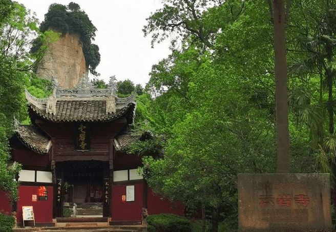 云岩寺建在山脊,背负三座主峰,坐北朝南中轴对称,成东禅林、西道观的格局,国家文物保护单位。唐乾符年间(874年)就有东西二院,明末被焚毁,清1725年重修,有殿宇四重。现占地26亩,有山门、文武殿、天王殿、大雄殿、西配殿等建筑面积2771平方米。山门重建于1743年,天王殿重建于1702年,山门外有唐李白题石碑。樵夫与耕者,出入画屏中,是国民党元老于右任手书。西配殿又称飞天藏殿,是南宋僧人真明建于1181)年,元至正年间重葺,清1719、1754)均有补修,是四川境内最早的木结构建筑。