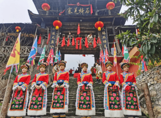 1、石椅羌寨在北川县城北25公里105国道沿线,距曲山镇2公里,距唐家山7公里,多古树名木和珍奇花卉。有绮丽迷人的曲溪叠瀑,雄峻奇特的山峦峰石,变化万千的云雾气象,被称为云朵上的山寨。古老的羌族喝咂酒、跳锅庄、敲皮鼓、舞龙灯等羌民族习俗风情保存至今。