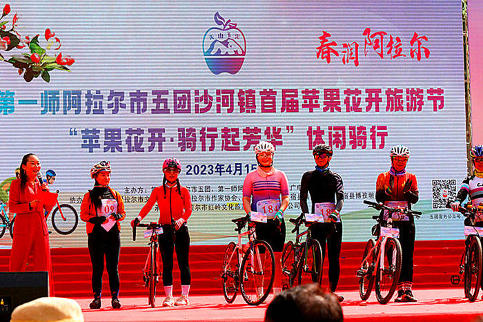 中国民生经济网讯 春暖花开季,赏花正当时。各地“赏花游”纷纷盛装登场。4月15日,地处天山脚下的新疆生产建设兵团第一师阿拉尔市五团首届苹果花开旅游节盛大开幕,10万亩苹果花花开成海,300余名骑行爱好者向着春光骑行。