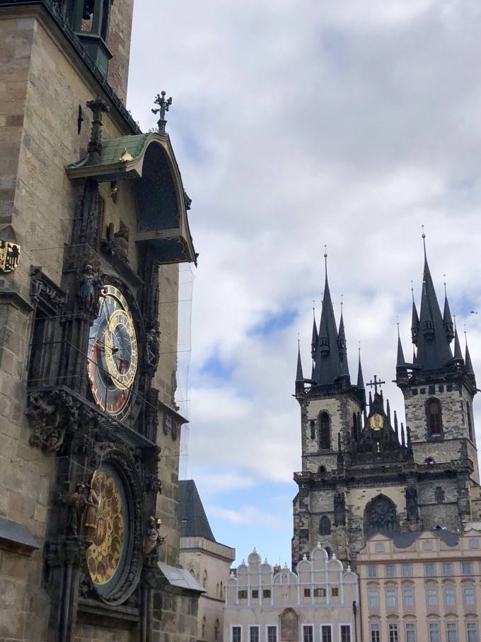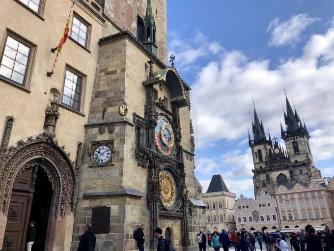 一路上老城区的中世纪老建筑,仿佛瞬间穿越回几百年前。老城广场的中央,是市政厅,最为出名的是 布拉格 天文钟。