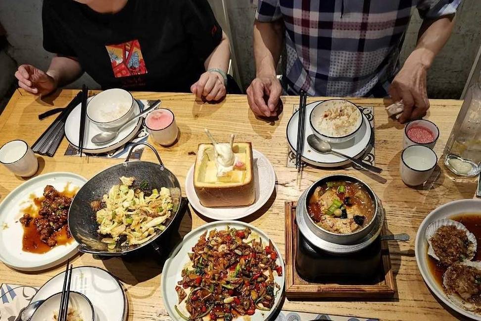 五道菜一道甜点,除了糖醋里脊的甜比较江南以外,川菜、湘菜、闽菜、粤菜都有,而女婿却说:这道吐司冰淇淋是新杭州菜。