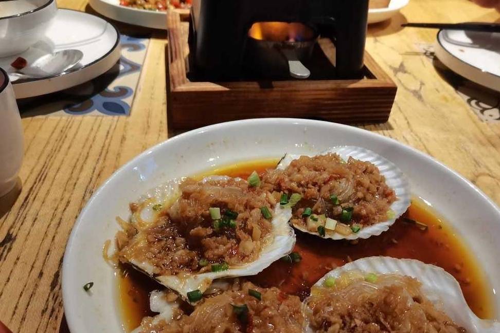 糖醋里脊、干锅花菜、小炒牛肉、豆腐海鲜煲、粉丝蒸扇贝,还有一道中西合璧的吐司冰淇淋。