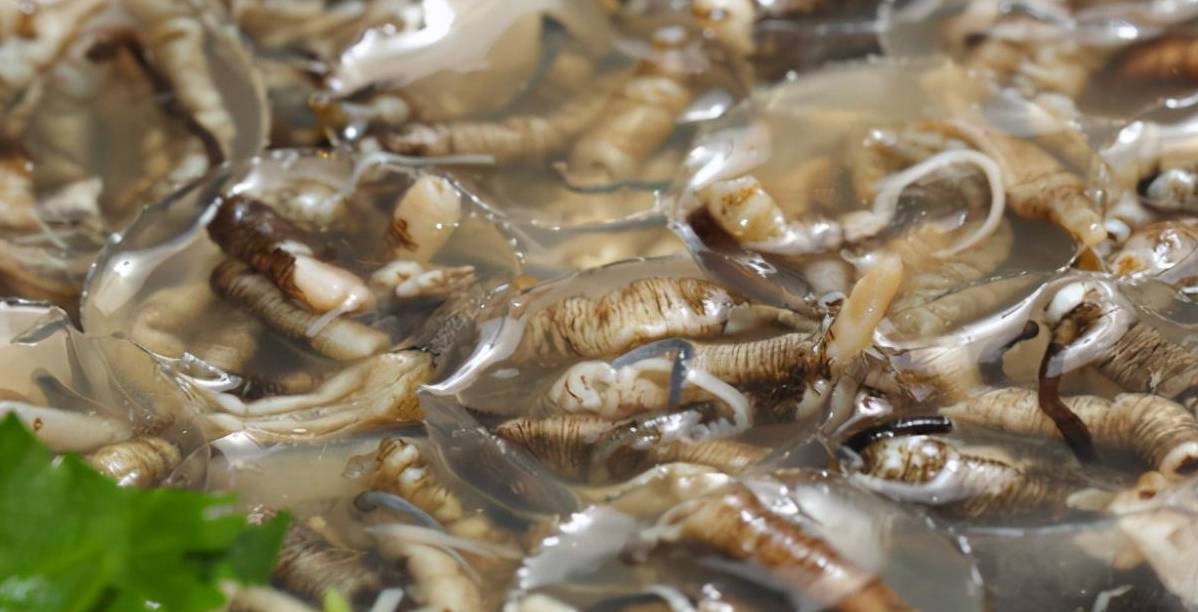 这是福建的一种特色小吃,这个小吃所用到的原料是一种蠕虫然后经过熬煮,最后凝结成块儿,外面犹如我们平时吃的皮冻,里面可以清晰看到蠕虫,据说营养价值也是特别高,但只是看到里面的虫子,很多人就已经接受不了了。