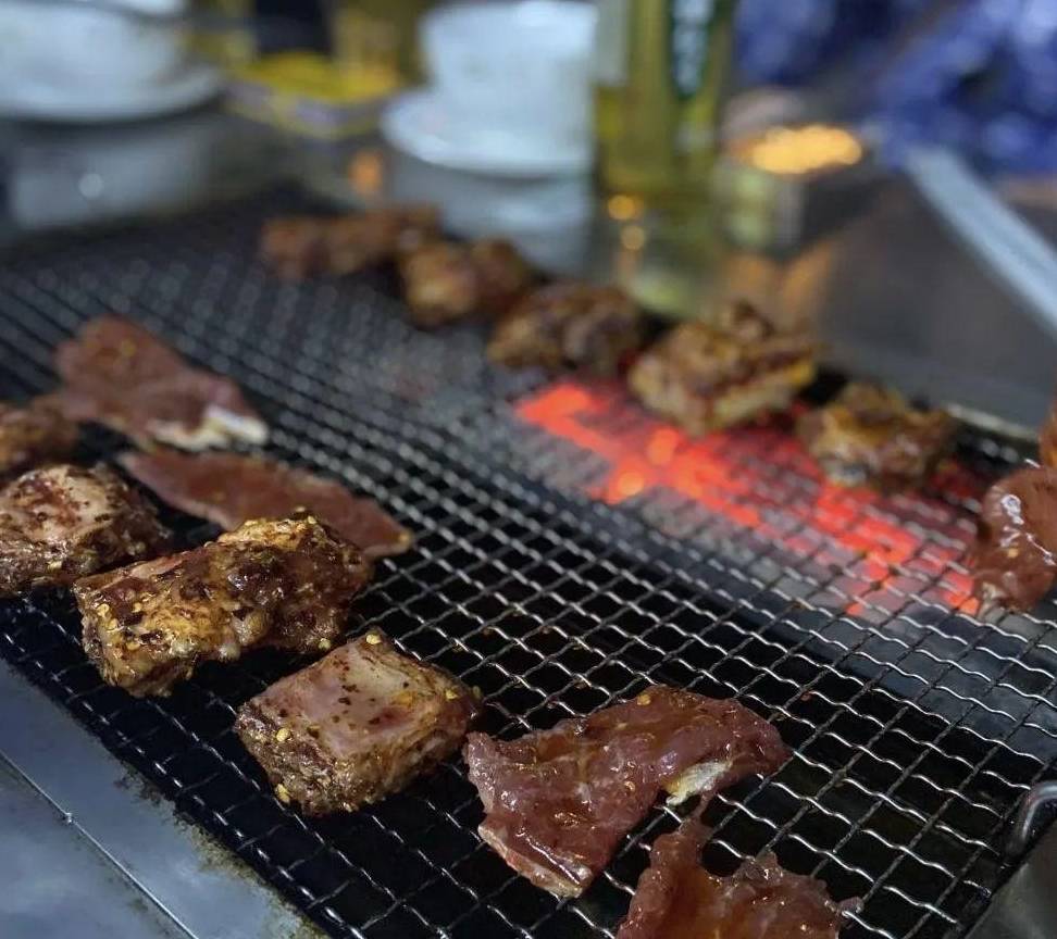 对于烧烤来说,炭火太重要了,有的商家甚至还会悄咪咪在电、气炉子里面夹两块炭,与其说这是顶风作案,不如说这是乐山人在烧烤这件事上体现的执拗和底线。