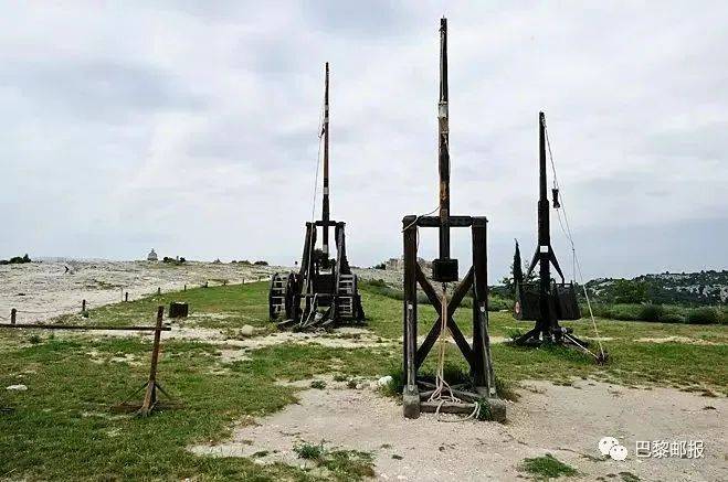 现在的城堡只剩下断壁残垣,外围建筑尚存。山顶平原散摆着几件用于攻城守城的巨型战争机器,攻方战车披着坚硬外壳,中央有一根粗大横木,用于冲撞城门。守方的抛石车列阵屹立,时刻准备着反击来犯之敌。