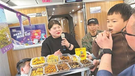 “淄博文旅推荐官”在烧烤专列上推荐淄博美食 图/淄博发布 |