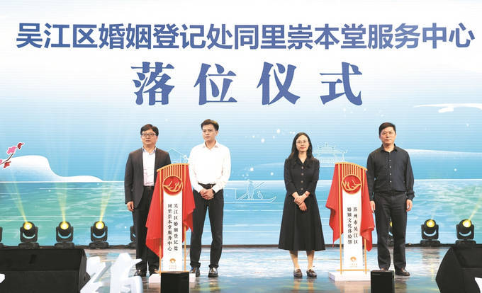 吴江区婚姻登记处同里崇本堂服务中心落位仪式。