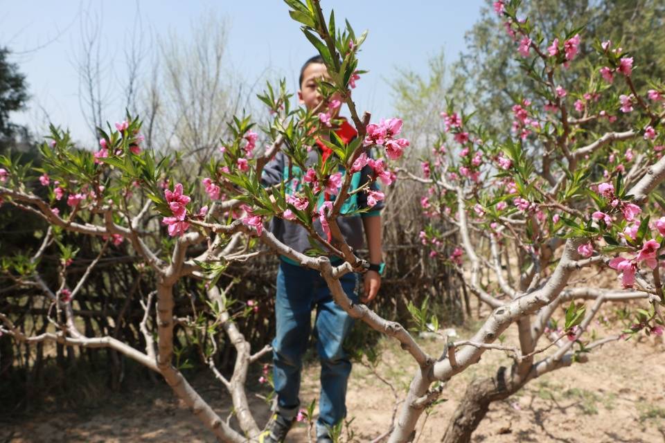 4月19日,随意走进二沟村一社的其中一家桃园,主人何天峰夫妇正在桃园里地忙碌着给桃树施肥。漫步桃园之中,满眼望不尽的赴一场春天之旅。