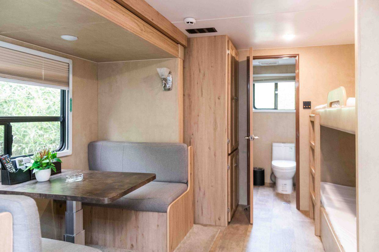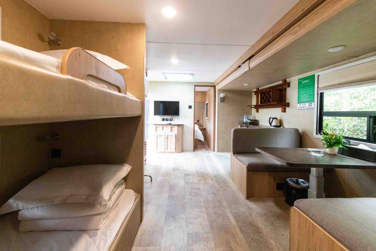 房车分为标准房车、情侣房车、豪华房车、豪华拓展与豪华大拓展房车,每种房车都有独特的设施,大家可以根据人数需求选择。除此之外,露营地还设有户外野营帐篷,更接近户外。