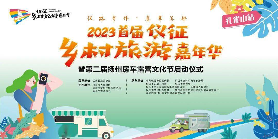 “ 仪路乡伴 真享美好 ”2023首届仪征乡村旅游嘉年华(孔雀山站)暨第二届扬州房车露营文化节启动仪式将于 4月20日(周四)上午9:30在陈集镇 孔雀山公园芸台广场正式举办。