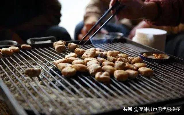 在建水吃烧豆腐最有趣,炭火上铁屉特大,豆腐多堆在一角,食客围屉而坐,熟一个,拣食一个,摊主南向坐,不断翻动。屉角备有数个小罐,每一食客有一对应,每吃一个豆腐,摊主就扔一粒包谷在那罐中,等吃完要结账时,摊主就数罐中的包谷粒计数收款,很有“撒豆成钱”的意趣。