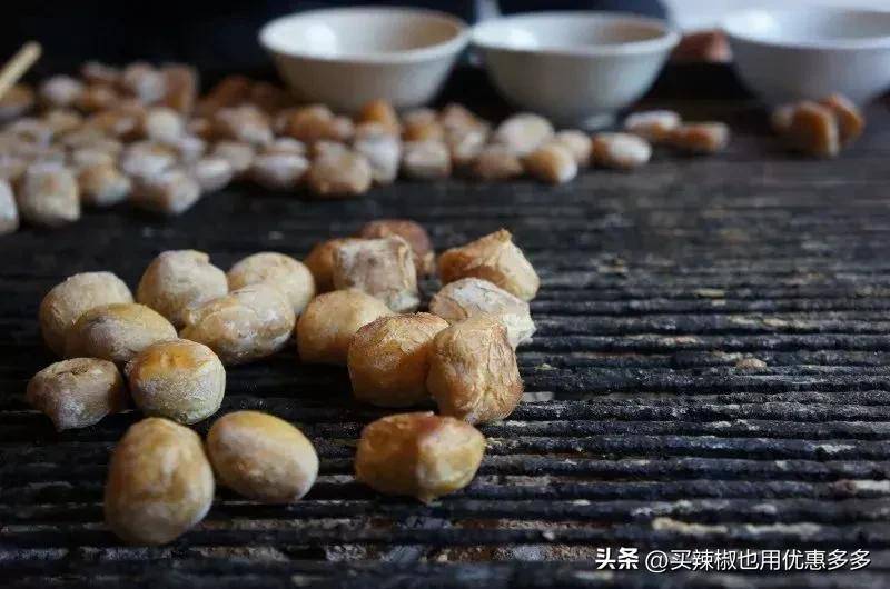 刚烤好的豆腐很烫,用手拿起后,在手中不停翻转给其降温。然后用手捏住其中一角,把豆腐撕成两半,热气腾腾。如此,豆腐露出细白柔美的内里,外韧内软,口感极佳,配以沾水,令人食指大动!