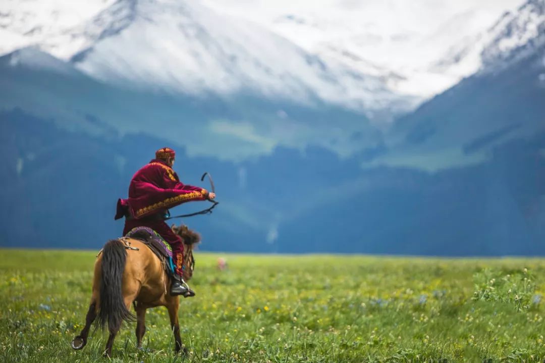 骑马飞奔着、驱赶牛羊着、卧在草地着