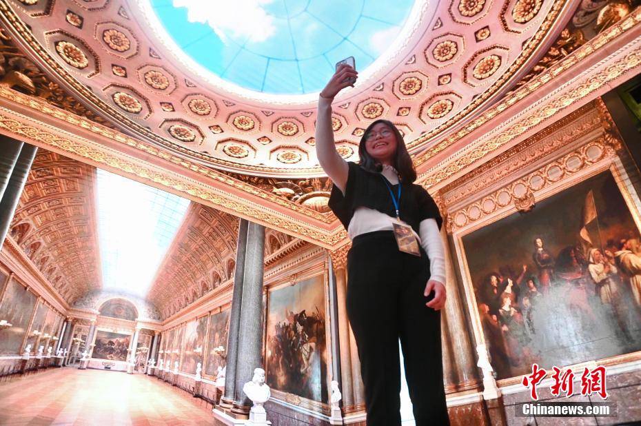 图为电子屏幕呈现虚拟凡尔赛宫的室内景观。