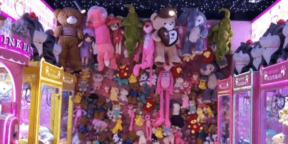 网红娃娃机也很抢眼,一整面墙的娃娃,满满的少女心,想拿哪个娃娃就要拿出自己的实力啦!