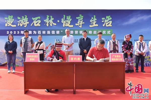 启动仪式上,石林风景名胜区管理局代表与广东省旅行社行业协会成员广东中旅游假日国际旅行社、中旅(广东)国际旅行、携乐国际旅行社、广东省口岸旅行社代表签署合作协议。双方将通过进一步强化石林特色旅游线路和产品在大湾区的宣传推介,加深本地旅游企业与粤港澳大湾区旅行社的合作与交流,吸引更多粤港澳大湾区市民到石林旅游观光、休闲度假。