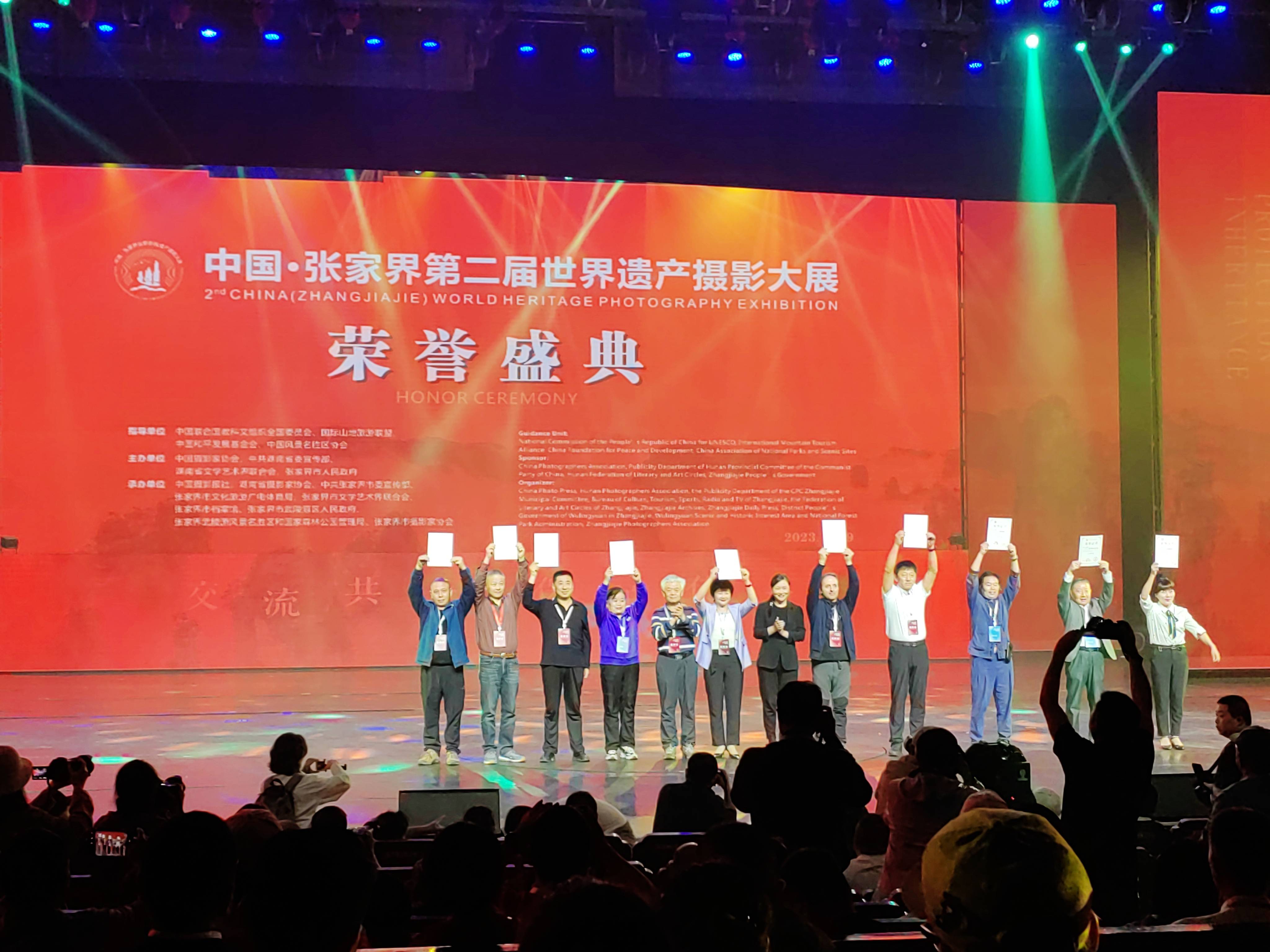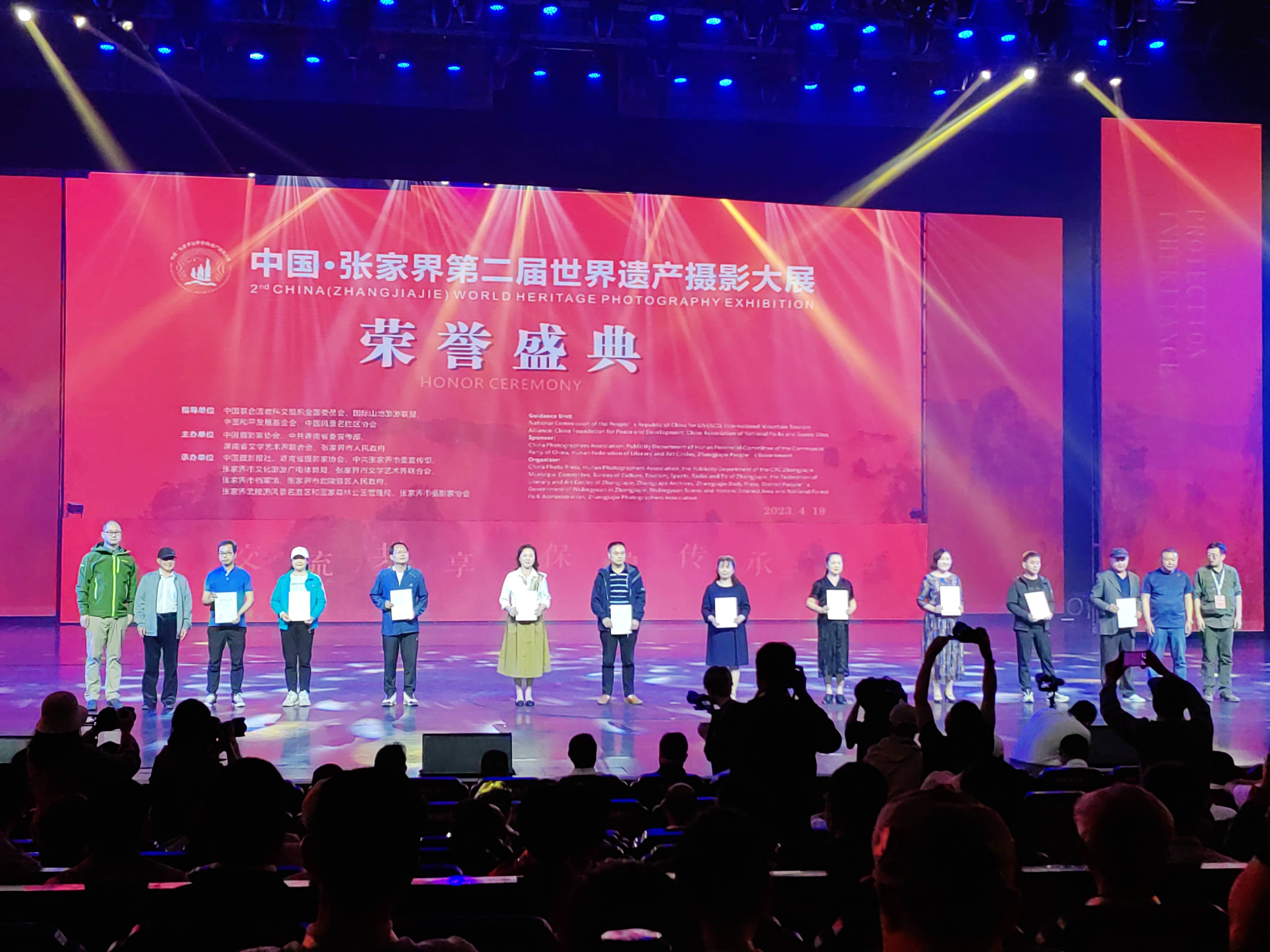 荣誉盛典举行了颁奖仪式,在“交流共享 保护传承”中国·张家界第二届世界遗产摄影大展报名展、“世界遗产地·仙境张家界”主题摄影展等展览和项目中获奖的近70名代表上台领奖。