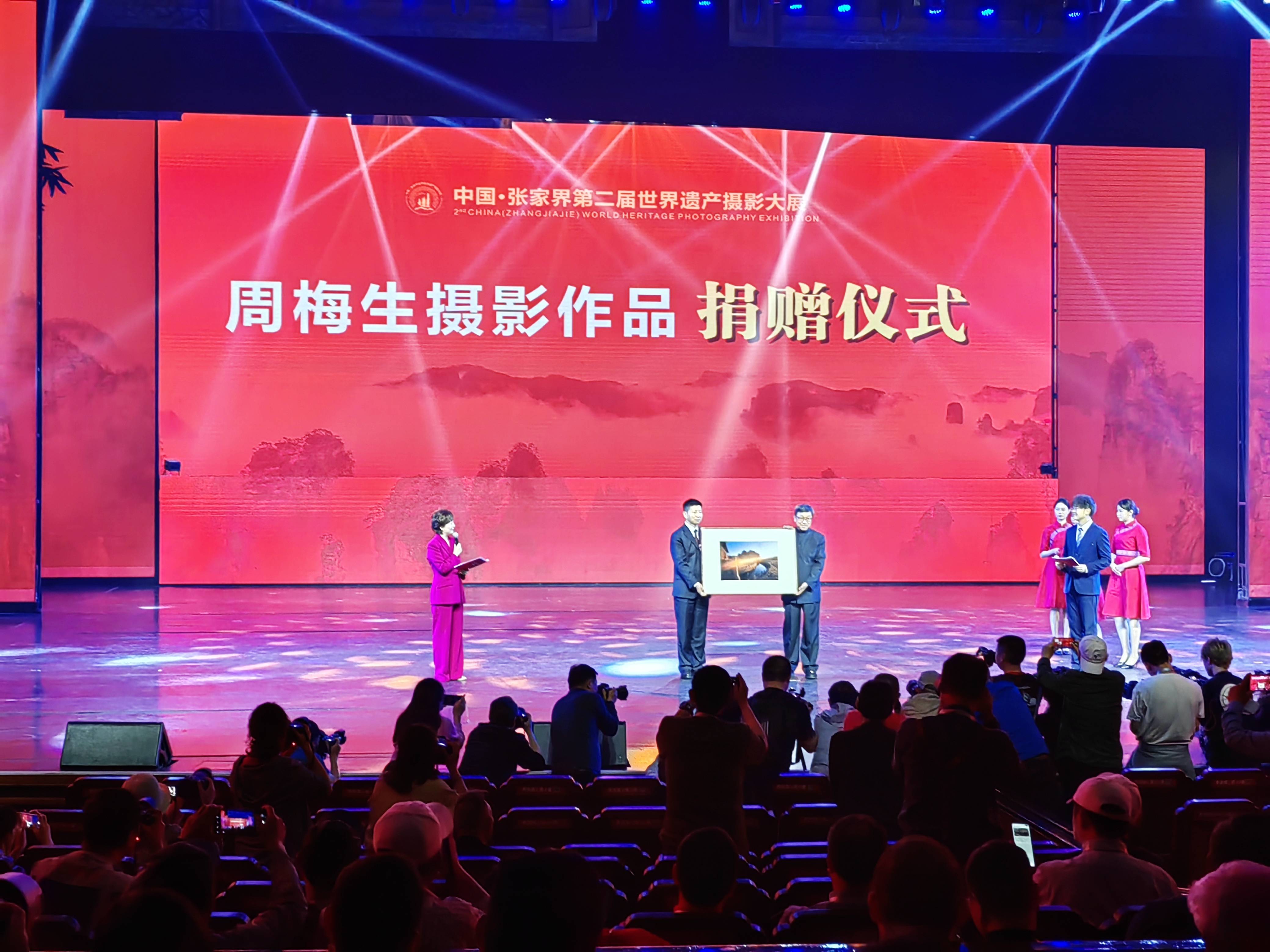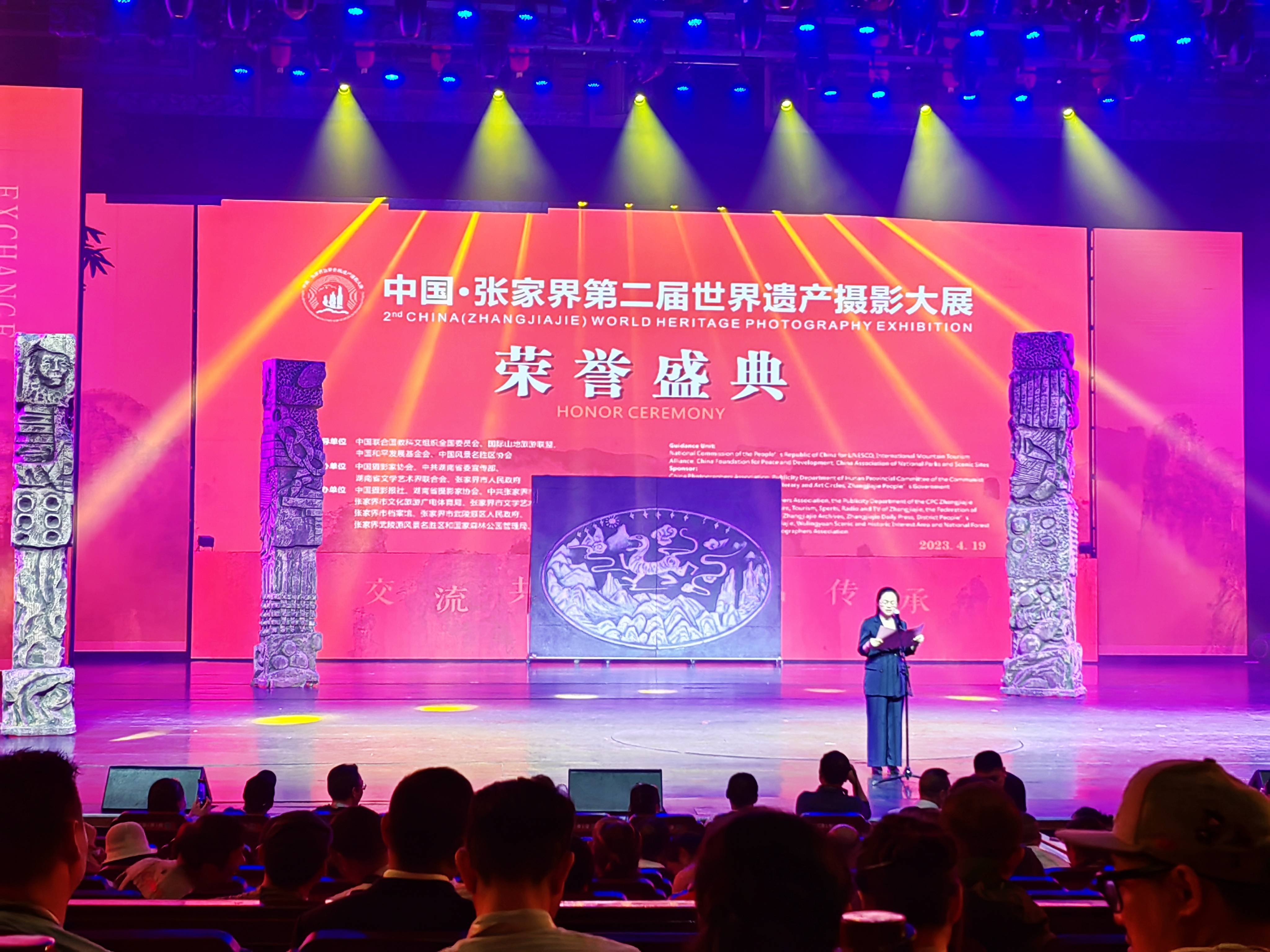 4月19日下午,“交流共享 保护传承”中国·张家界第二届世界遗产摄影大展荣誉盛典在张家界市武陵源区魅力湘西大剧院举行。荣誉盛典上,张家界市获颁“中国与意大利世界遗产摄影双年展基地”“世界遗产摄影师联盟”牌匾,市委副书记、市长王洪斌致辞,并接受世界遗产影像学专家周梅生向张家界市捐赠中国世界遗产地个人珍贵影像作品和大数据硬盘。