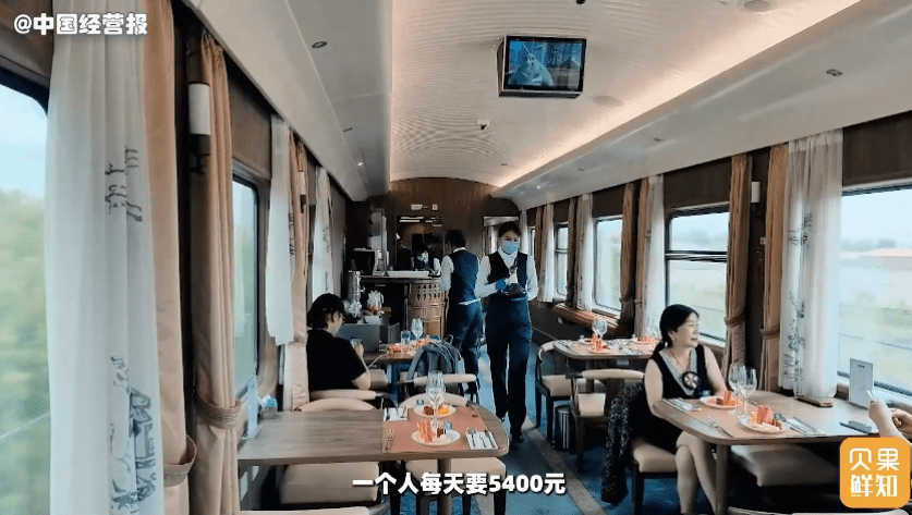 这样的豪华列车,价格也不便宜。根据房间档次不同,暑期呼伦贝尔号的价格从2万元/人到2.7万元/人不等,最贵的房型平均下来一个人每天要5400元。