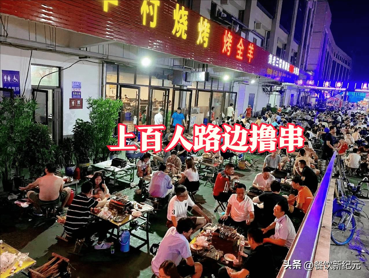 原以为能够在店里吃,哪知店里太小,早就坐满了人,店家便将二人安排到了店门口的路边撸串, 上百人在路边撸串,就跟在乡下吃席一样。