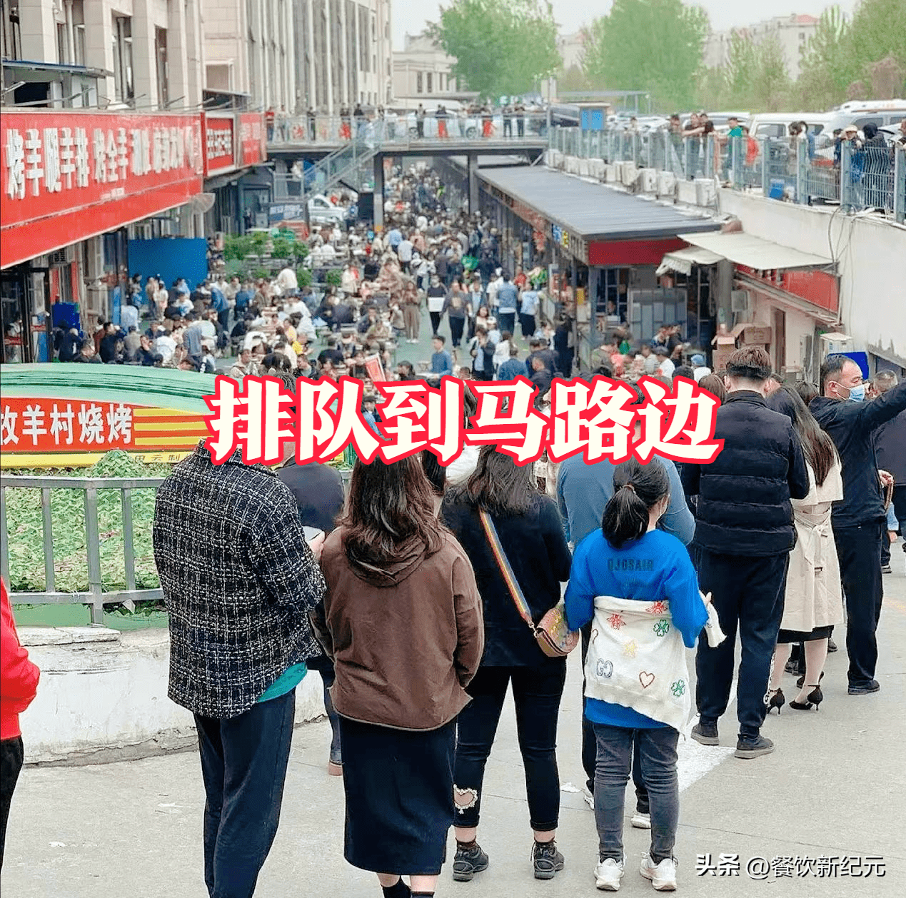 出了高铁站后二人直奔烧烤店, 到了烧烤店门口却发现队伍排到了马路边,就连天桥上都是排队等候的人,用人山人海来形容一点都不为过。