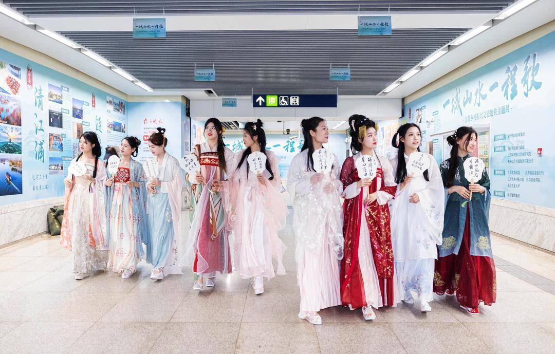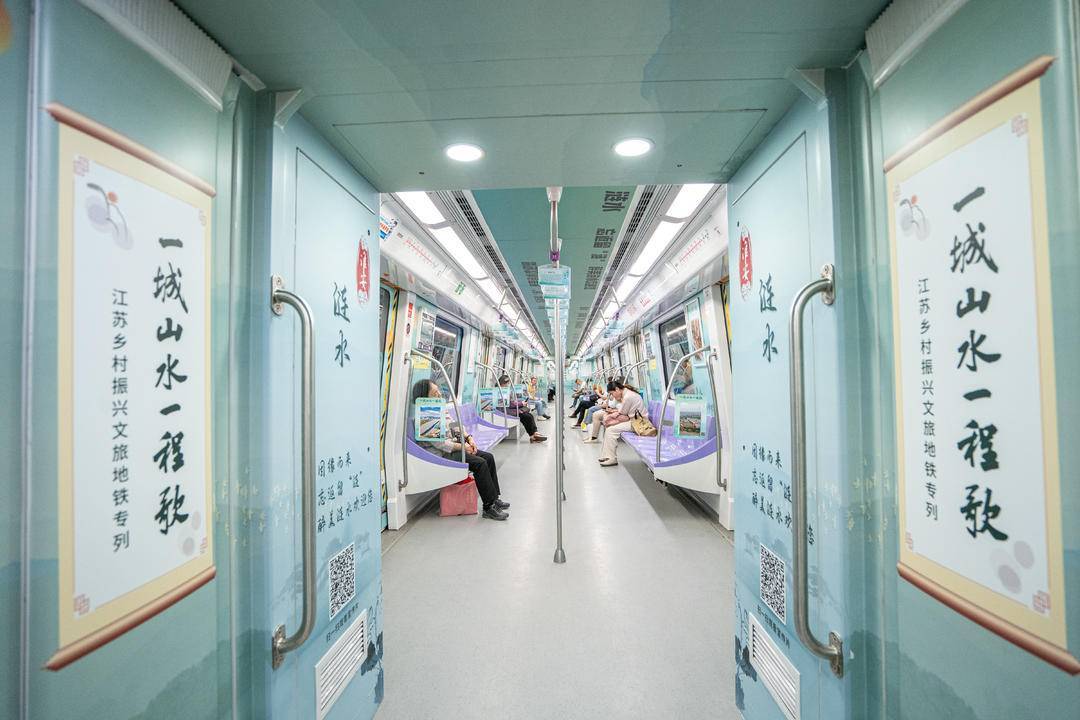 清新脱俗的底色、色彩斑斓的画面……从草场门大街地铁站4号口进出,便可领略到荡口古镇、镇江、盱眙、清江浦、涟水、梅里、连云港、东台、句容等九个市区县、乡镇的人文风景。登上“一城山水一程歌”地铁文旅专列的单位,涵盖了苏南、苏中和苏北,它们将展示不同地区丰富多彩的特色文旅,共同凝练和呈现广袤江苏大地上乡村振兴的最美图景。记者在现场观察到,尽管是上班高峰期,乘客步履匆匆,但仍有不少人驻足观看欣赏、拍照。