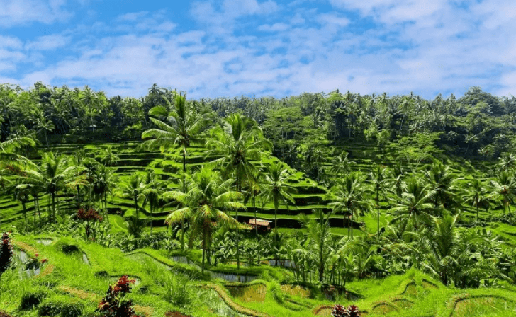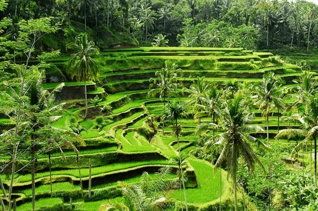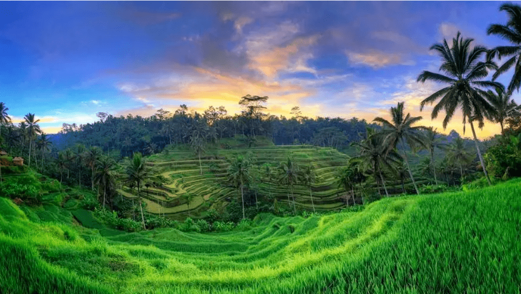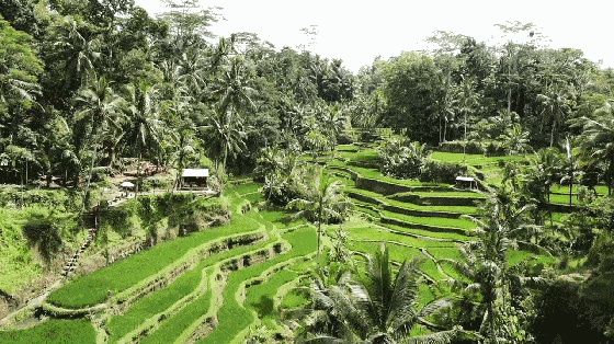 而乌布正是巴厘岛最重要的稻米产地,成片的稻田环绕着乌布,层层相叠的梯田与远处的椰树相映成趣。