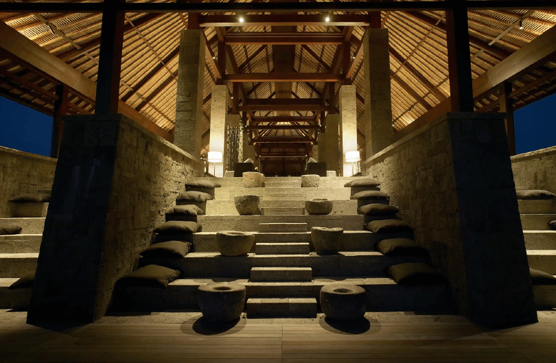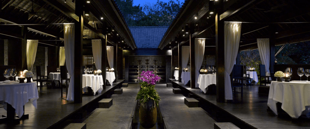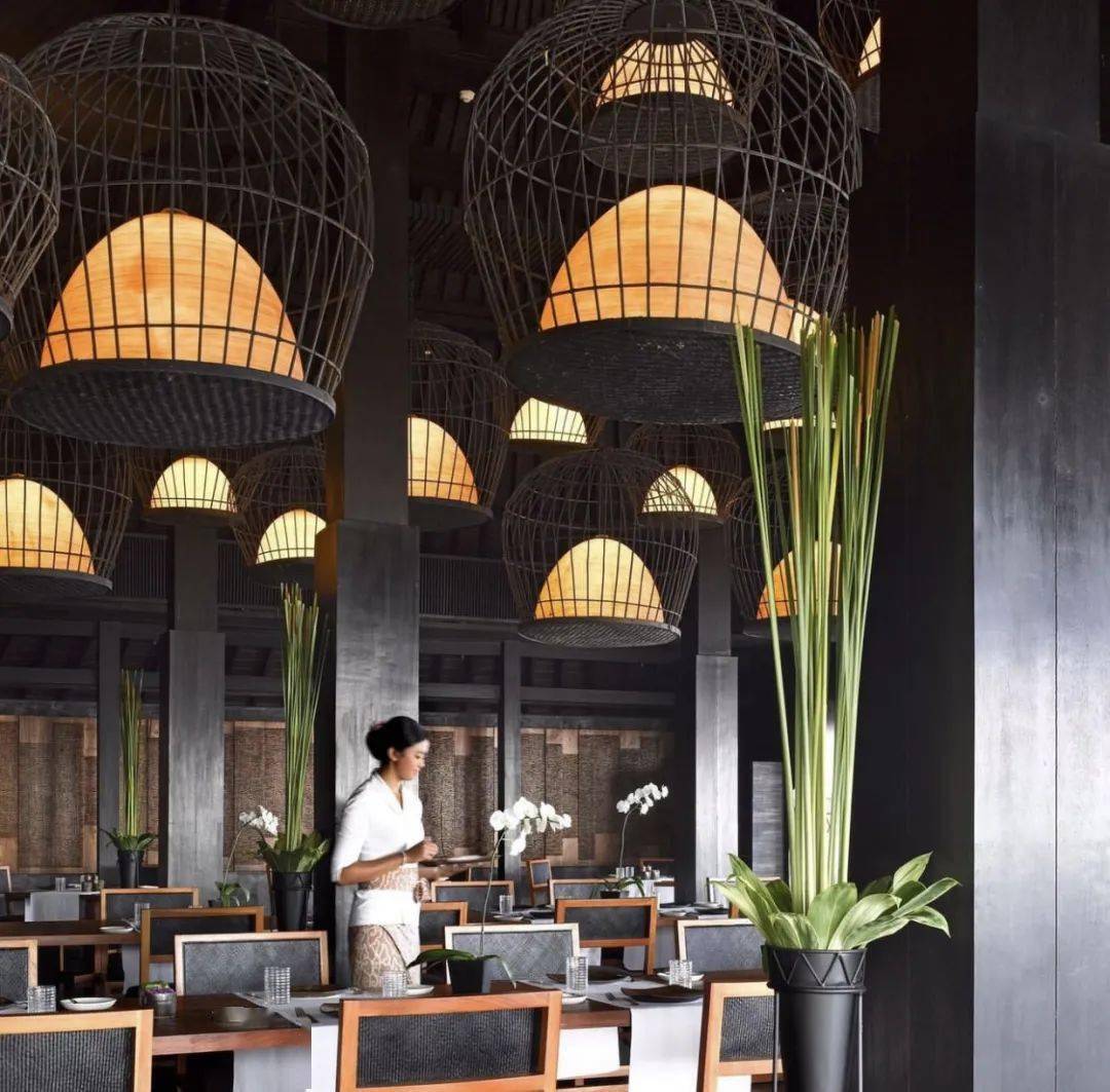 一家位于悬崖边的餐厅,餐厅设计结合了传统巴厘岛手工艺品,华丽天花板配上传统手工编制的木篮灯,品尝着传统印尼美食,这才是真正的巴厘岛度假。