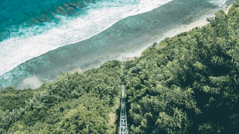 在悬崖和海洋之间,长达1.5公里的海滩只能通过度假村独有的倾斜电梯到达,倾斜电梯将客人从陡峭的悬崖顶部带到下面的海滩,在悬崖下降时紧贴悬崖的自然轨迹。