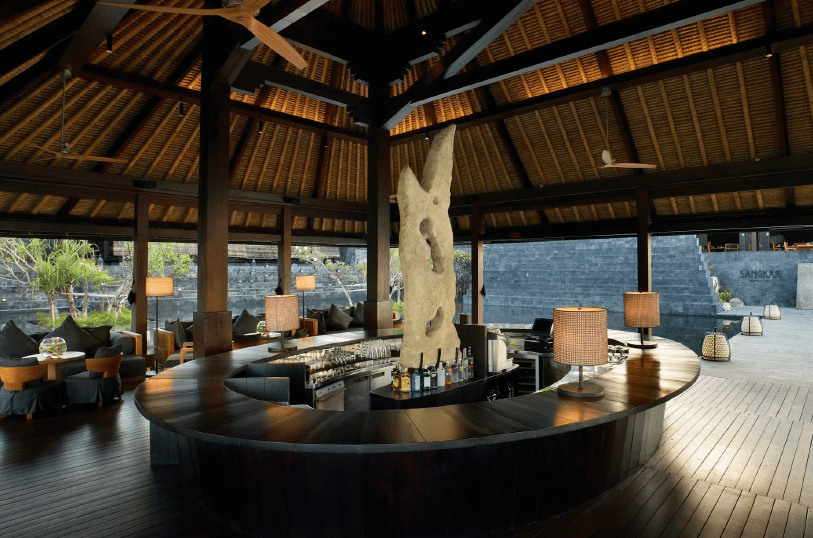 华丽而舒适的露天酒吧有着独特天台,可俯瞰险峻悬崖,一览巴厘岛炫目迷人的海岸景致和日落景观。