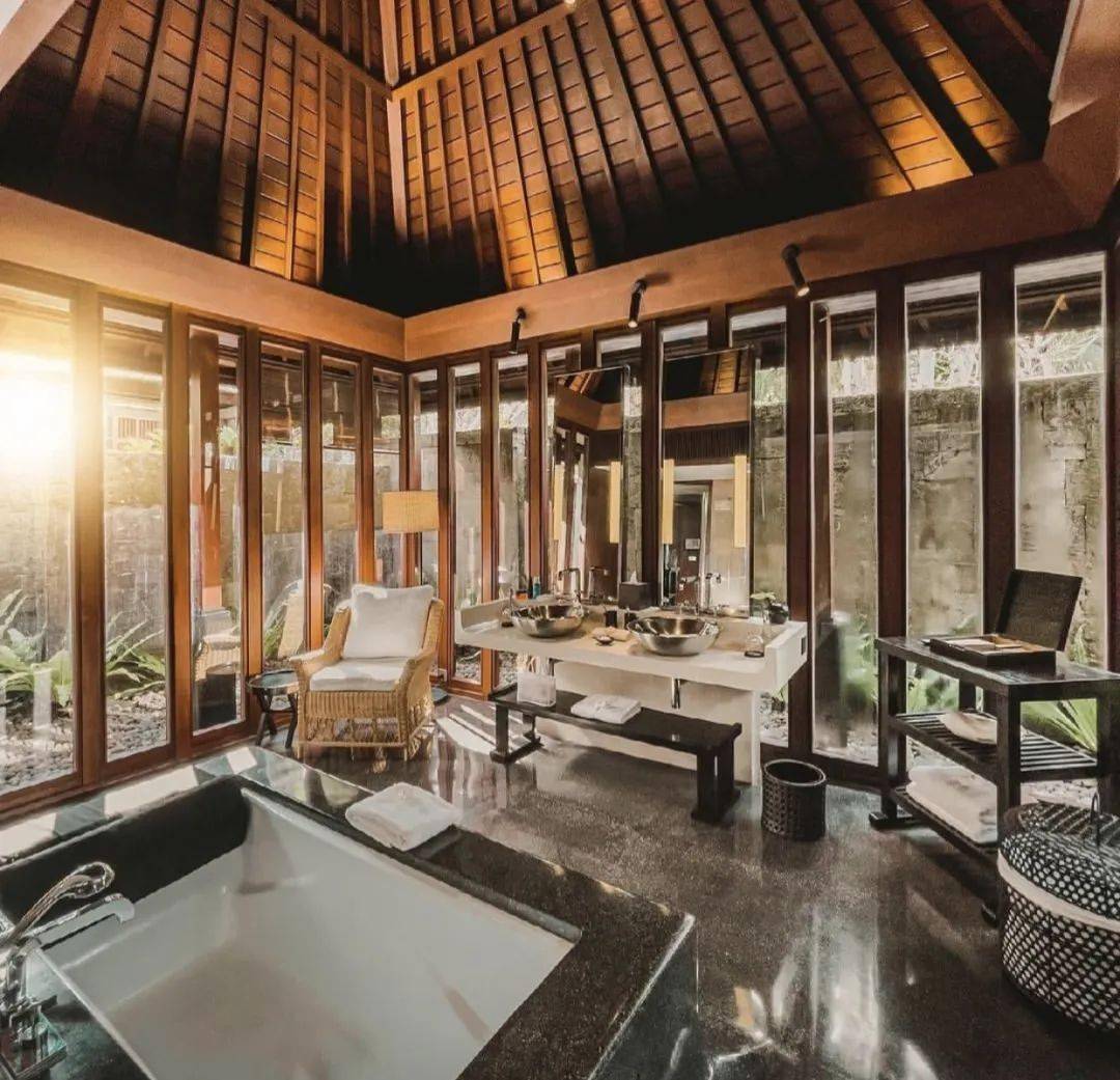 酒店设有23顶豪华单卧帐篷别墅及1间双卧小屋,别墅及小屋错落有致的散落在热带雨林中,每间帐篷之间连接着悬索桥,带给宾客极致的私密性,四周环绕着无边稻田,背靠着气势磅礴的阿漾河,这里是Bensley打造的梦幻伊甸园。