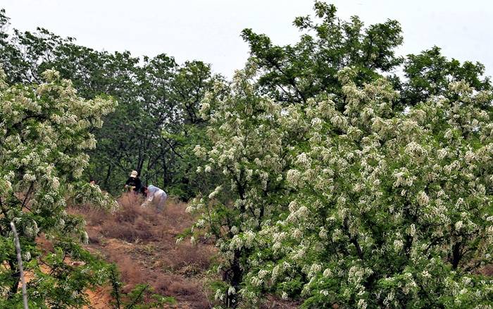 沙苑一带,每年四月中旬,万亩槐花纷纷开放,蜂恋蝶舞,阵阵幽香飘逸在十里八外。你瞧那一大片垂挂于枝头的槐花似千万只玉蝶翩翩飞舞,阵阵微风吹来,白花绿叶相互衬托,让人心旷神怡,更美的还是每年槐花开放时节,也成为蜂农采蜜的上等蜜源,那蜂蜜的味道清香甘甜,含维生素和多种矿物质,具有清热解毒、润肺等功效,深得市民的青睐。