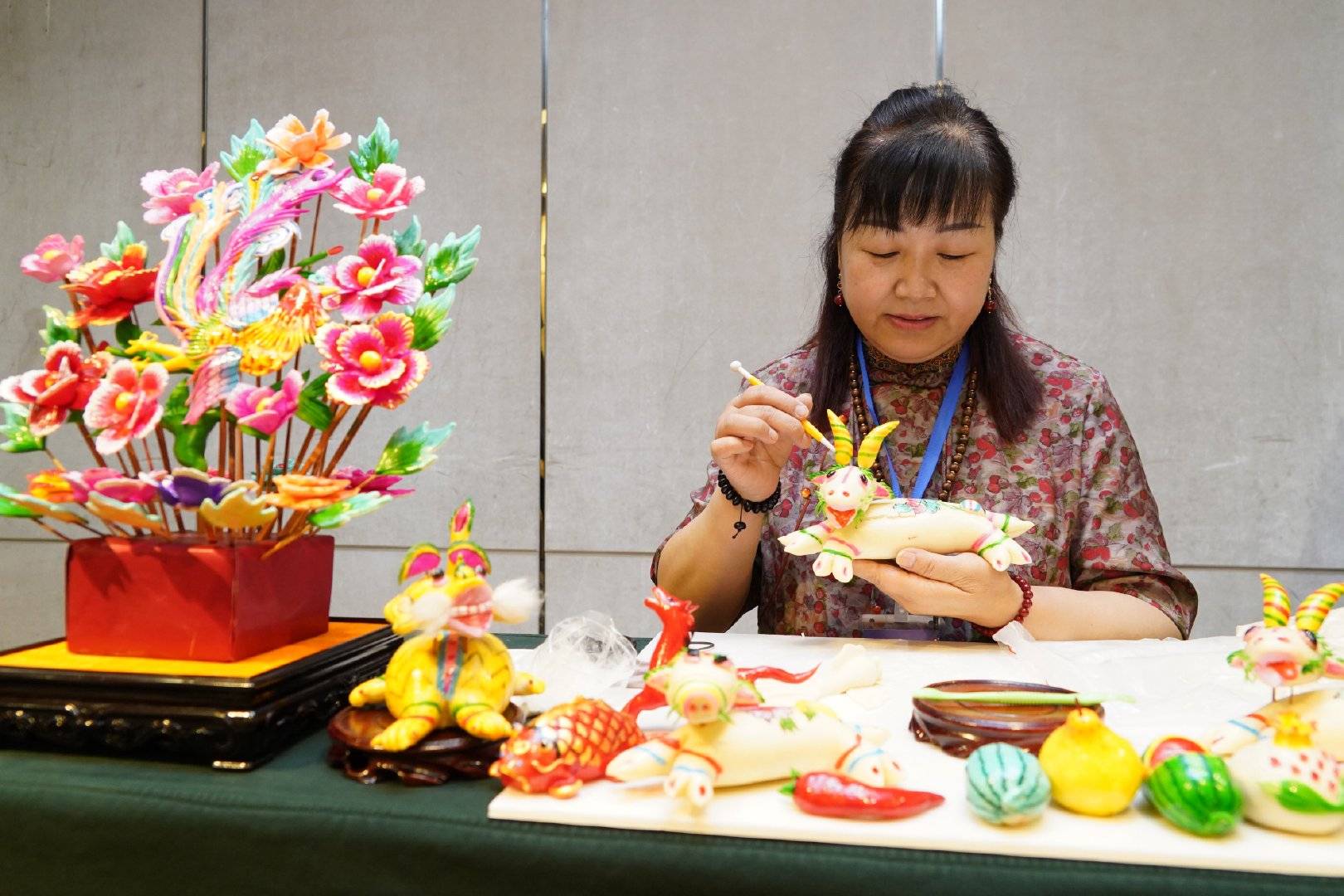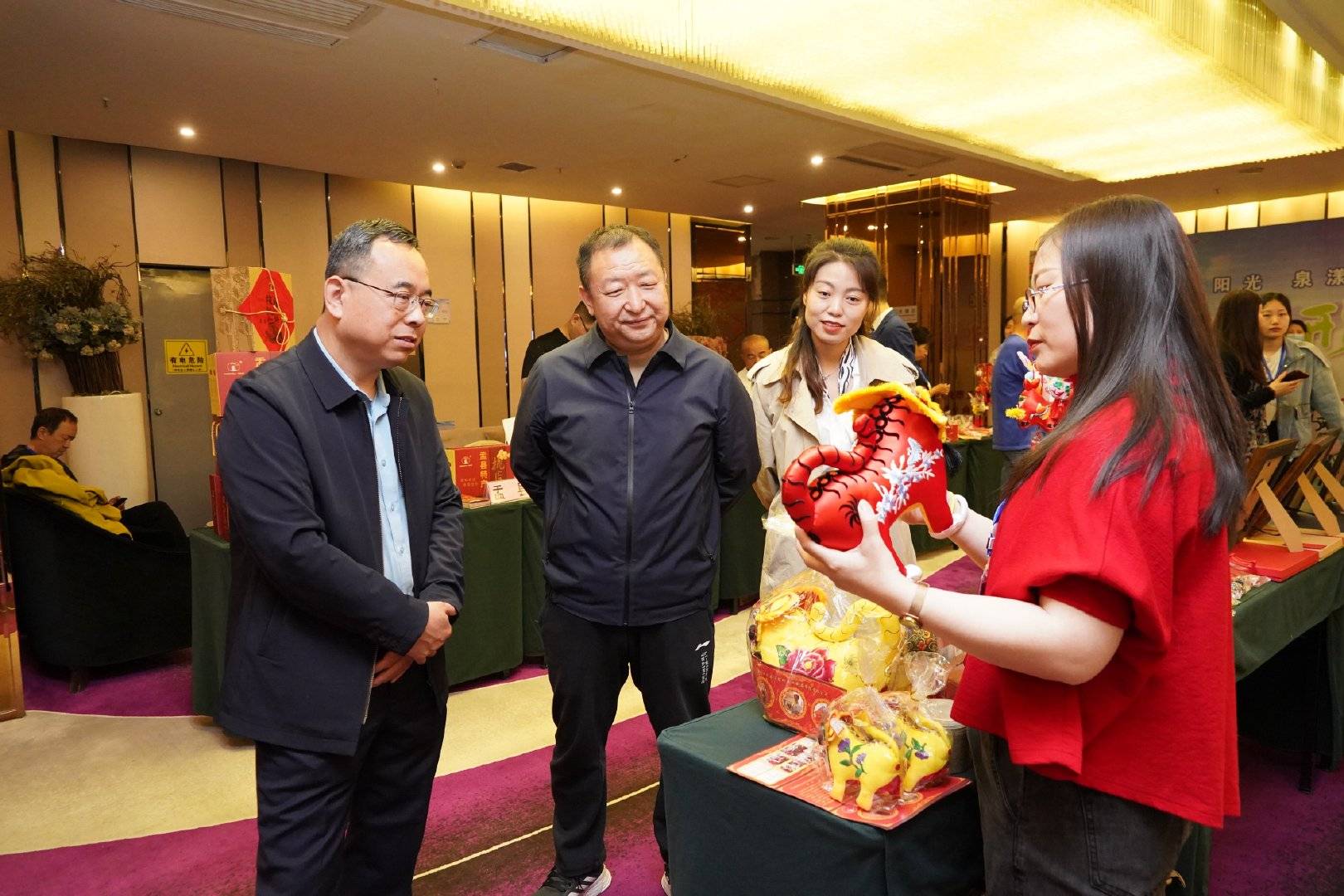 会场外,设置了阳泉市各县区、各景区展示专区,展品丰富多彩,尽展阳泉秀美风光和非遗文创作品。有外观精美、寓意美好的布老虎,有纤毫毕现、栩栩如生的蛋画,有工艺考究、味道纯正的盂县月饼,还有薄如纸张、酥脆可口的咀子上压饼,引来过往的客人纷纷驻足观赏和品尝。