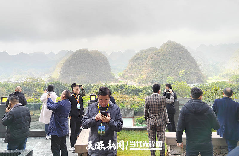 在本次考察观摩的首站兴义万峰林锦绣田园,嘉宾们站在观景台远眺群峰矗立,俯瞰锦绣田园,万峰成林在云雾间若隐若现,一幅水墨画卷徐徐展开,让人仿佛置身于世外桃源。嘉宾们迫不及待地用手机拍照,同时对雄奇壮阔的峰林景观发出由衷赞叹。