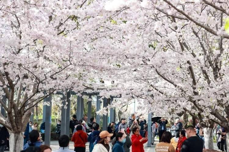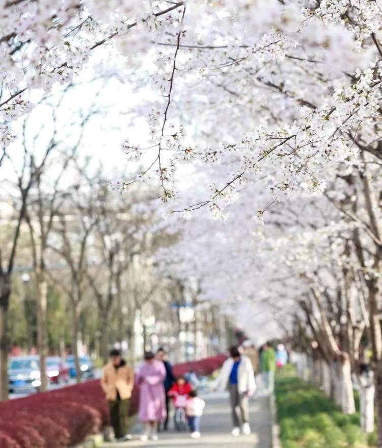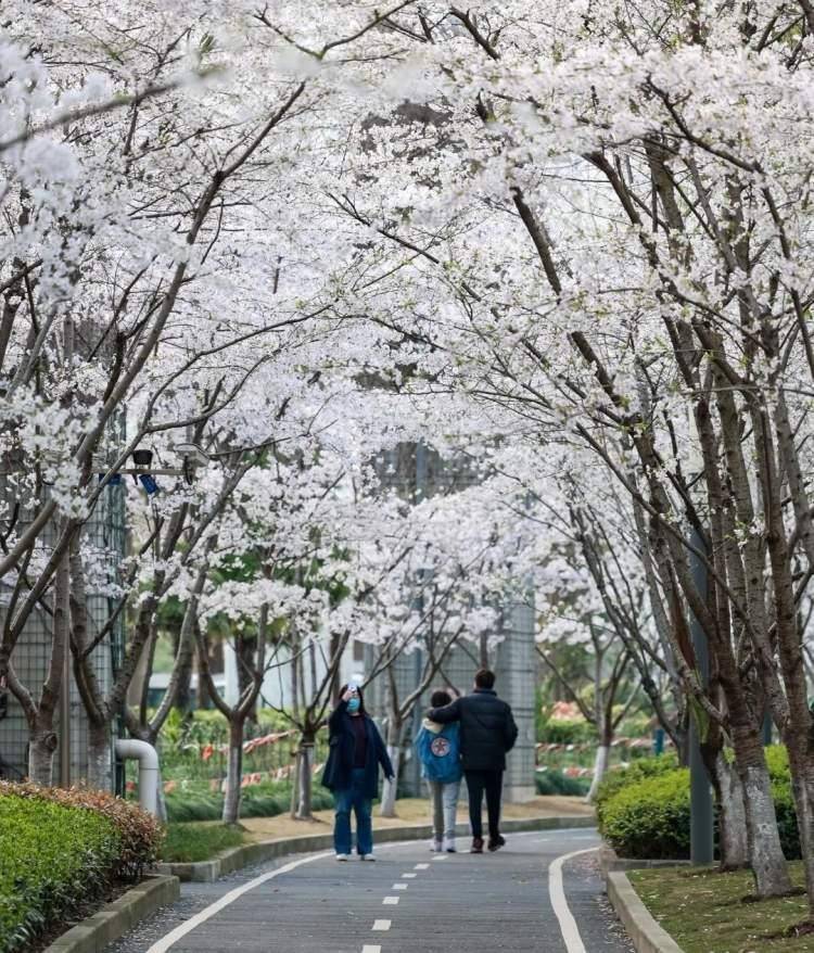 在这樱花烂漫的时节,桂江路中环绿廊樱花大道的游客们漫步赏樱,乐享春光。而在桂江路钦州南路路口,还有一位纯洁、美丽的“樱花仙子”,她身着汉服,向过往行人传递着“社会主义核心价值观”,守护这永不凋谢的文明之花。