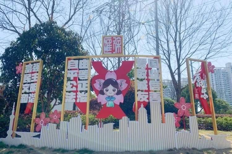 伴随着温柔的春风,来到浦北路虹漕路路口,“我爱康健”是每一个康健人对美好生活的“幸福告白”,为生活在这“美美街区 暖暖家园”感到自豪。“社会主义核心价值观”在润物无声中向过往的市民传播文明、涵养文明,为文明注入幸福温度。