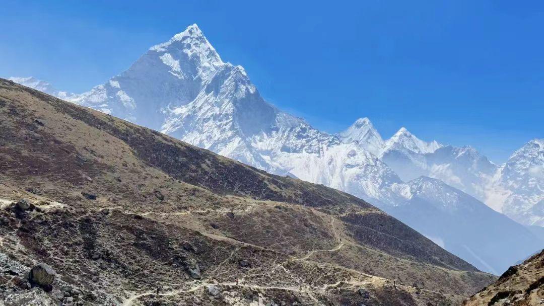 每每抵达新地方,队员们都要付出数倍的精力去应对高海拔后的高原反应和随机状况,这种不确定性,也让珠峰之旅充满了未知。4月18日,湖南省登山队结束了在腾波切一天的休整,启程前往海拔4915米的罗布切,一大早,队员们吃过早餐便早早出门了,刚出发的时候,天气还算风和日丽,一缕缕阳光照射在身上暖洋洋的,队员们感到温暖舒适。