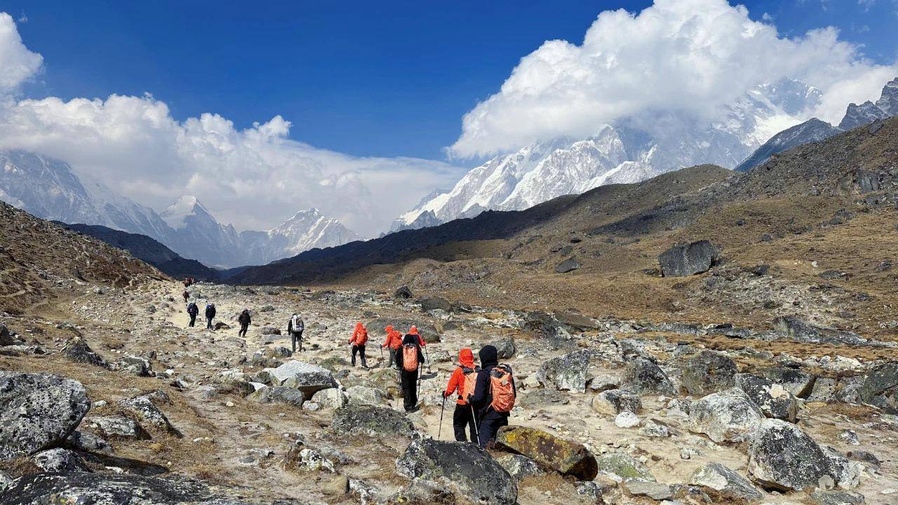 湖南省登山队,计划在罗布切休整一晚,第二天将启程徒步大约三个半小时,抵达珠峰大本营。
