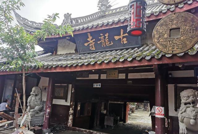 洪水之后的古龙寺大门外