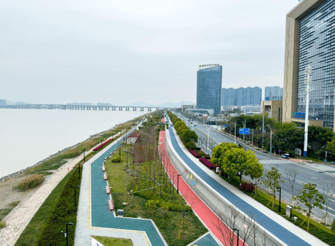 滔滔瓯江水不仅流淌着温州源远流长的历史文脉,更是融入了温州人生活的人间烟火。全长14公里,以滨江景观空间为载体的瓯江南岸绿道,建设有“骑行道、健跑道、漫步道”三线贯通4米宽的慢行道,是市民休憩游玩的好去处。