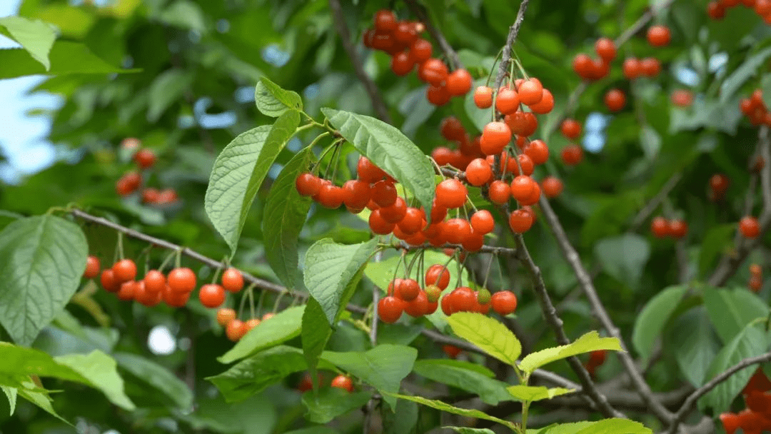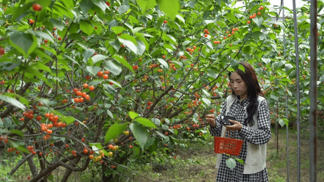 走进樱桃种植基地,一簇簇圆润的樱桃挂满了枝头,阳光透过翠绿的枝叶洒在晶红剔透、饱满丰腴的樱桃上,令人垂涎欲滴。结伴而来的人们正在将一颗颗诱人的樱桃收入囊中,果树林间不时回荡着欢声笑语。